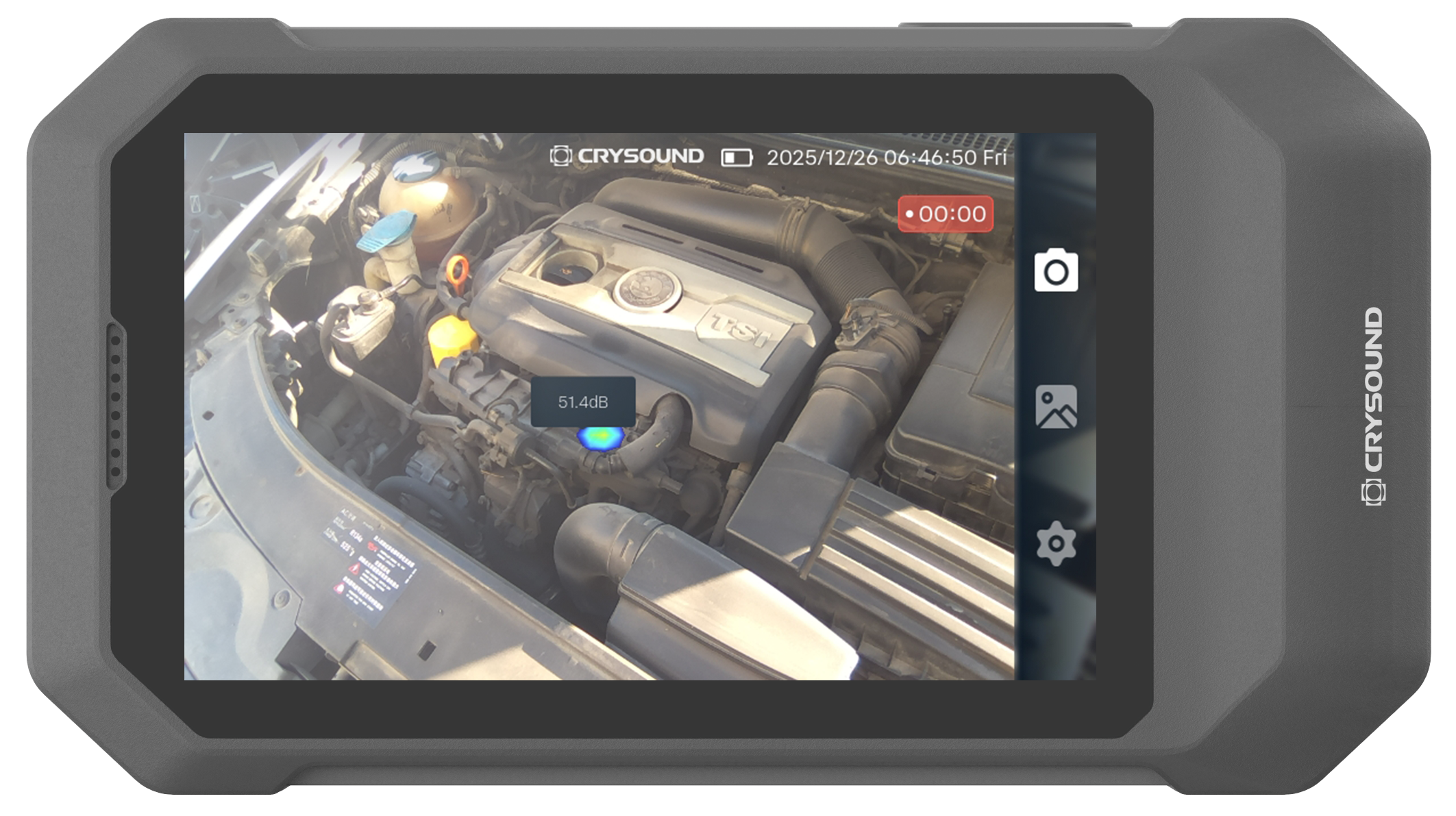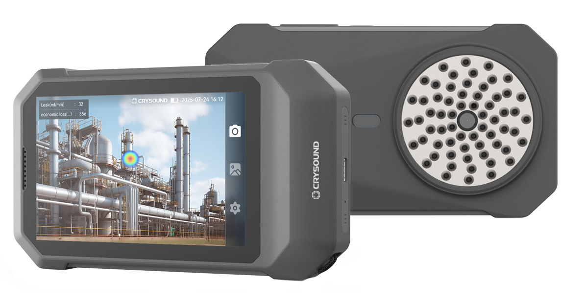 The CRYSOUND POCKET is a high-performance, ultra-portable acoustic imaging camera that helps maintenance teams detect compressed air leaks and partial discharge (PD). By overlaying a live soundmap onto a digital image, it allows technicians to pinpoint sound sources instantly, document findings, and act with total confidence.